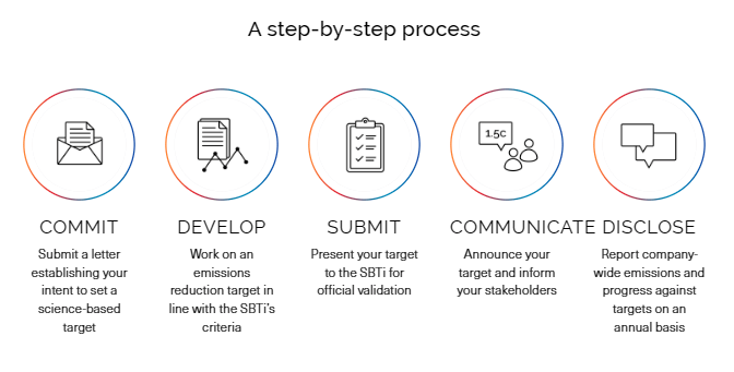 大多數企業遵循以下五步流程來設定科學碳目標: