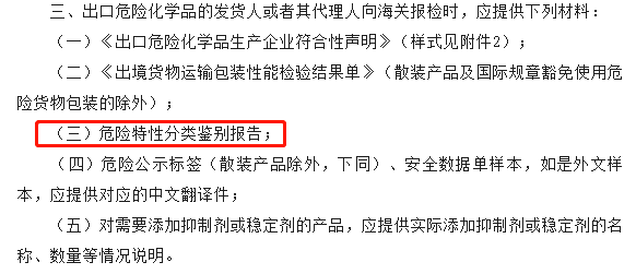 除此外,對(duì)于危險(xiǎn)化學(xué)品/危險(xiǎn)貨物的監(jiān)管人員,處于生產(chǎn)、貿(mào)易、運(yùn)輸?shù)入A段的安全要求,也需要提供危險(xiǎn)特性分類(lèi)鑒別報(bào)告。對(duì)于非危品,在報(bào)關(guān)時(shí),需要依據(jù)當(dāng)?shù)睾jP(guān)的要求,來(lái)判定是否需要提供危險(xiǎn)特性分類(lèi)鑒別報(bào)告。