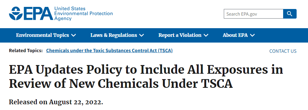 美國EPA更新TSCA審查政策,新化學物質風險評估審查變得更加全面