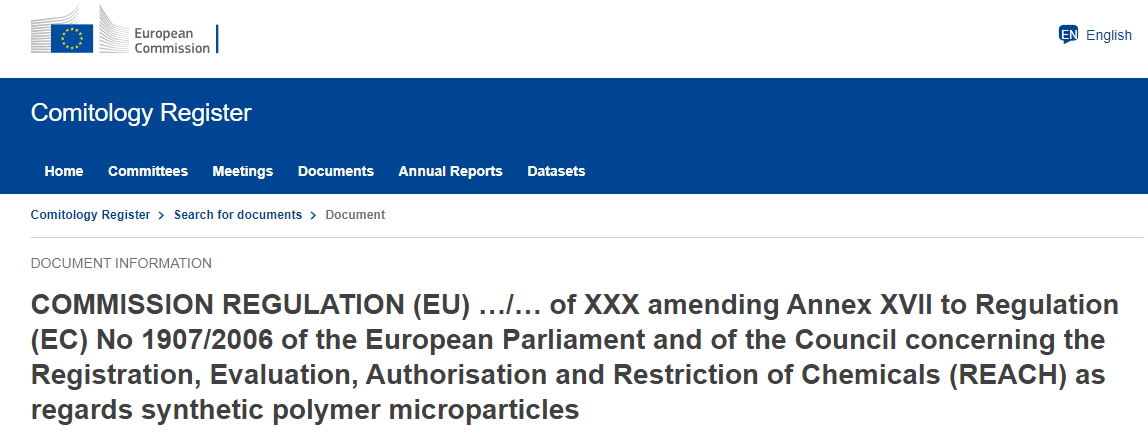 2022年8月30日,歐盟委員會發布了限制蓄意添加微塑料(MPs)的提議草案。該限制將包括低于5毫米的合成聚合物微粒和低于15毫米的纖維狀顆粒,這些顆粒用于產品之中,并可能在環境中釋放。該草案可以禁止微塑料被用于化妝品、清潔產品、殺蟲劑和運動場等,從而涵蓋可預防的微塑料來源。根據草案,歐盟委員會認為將天然、可降解和可溶聚合物排除在合成聚合物微粒的定義之外是適當的。