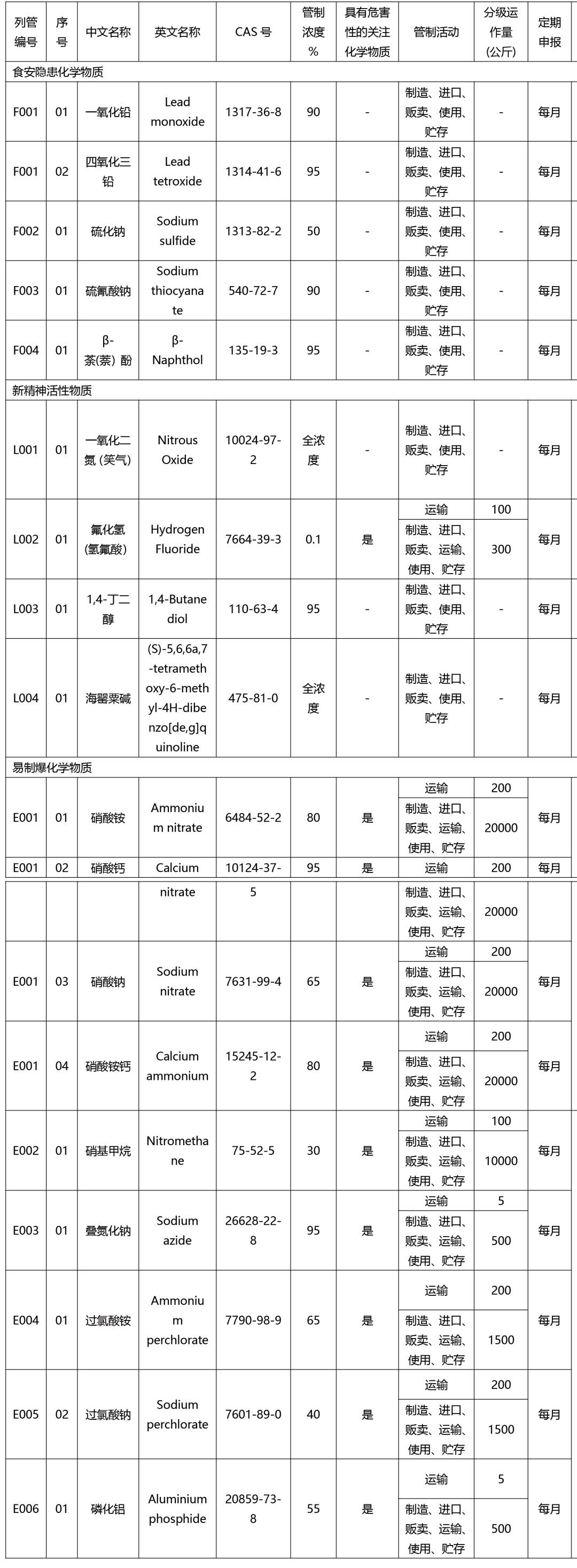 中國(guó)臺(tái)灣環(huán)保局為強(qiáng)化化學(xué)物質(zhì)管理,避免不當(dāng)使用造成人體健康及環(huán)境危害,擬將食安隱患化學(xué)物質(zhì)、新精神活性物質(zhì)及易制爆化學(xué)物質(zhì),共3類15種列為關(guān)注化學(xué)物質(zhì)。