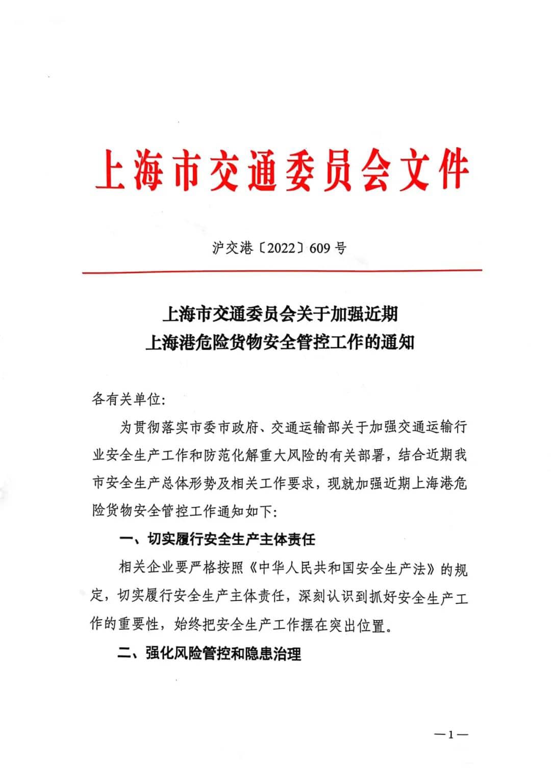 根據上海市交通委員會相關文件要求,自10月15日零時起至10月23日24時。上海港(洋山港除外)將暫停爆炸品、放射性物質的港口作業。