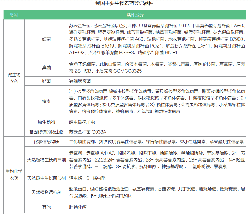 在政策層面上,2017 年修訂的《農藥登記資料要求》縮短了生物農藥試驗和登記用時,新生物農藥可在一年內完成多地藥效試驗 ;微生物農藥、植物源農藥和部分生物化學農藥可以減免殘留試驗。