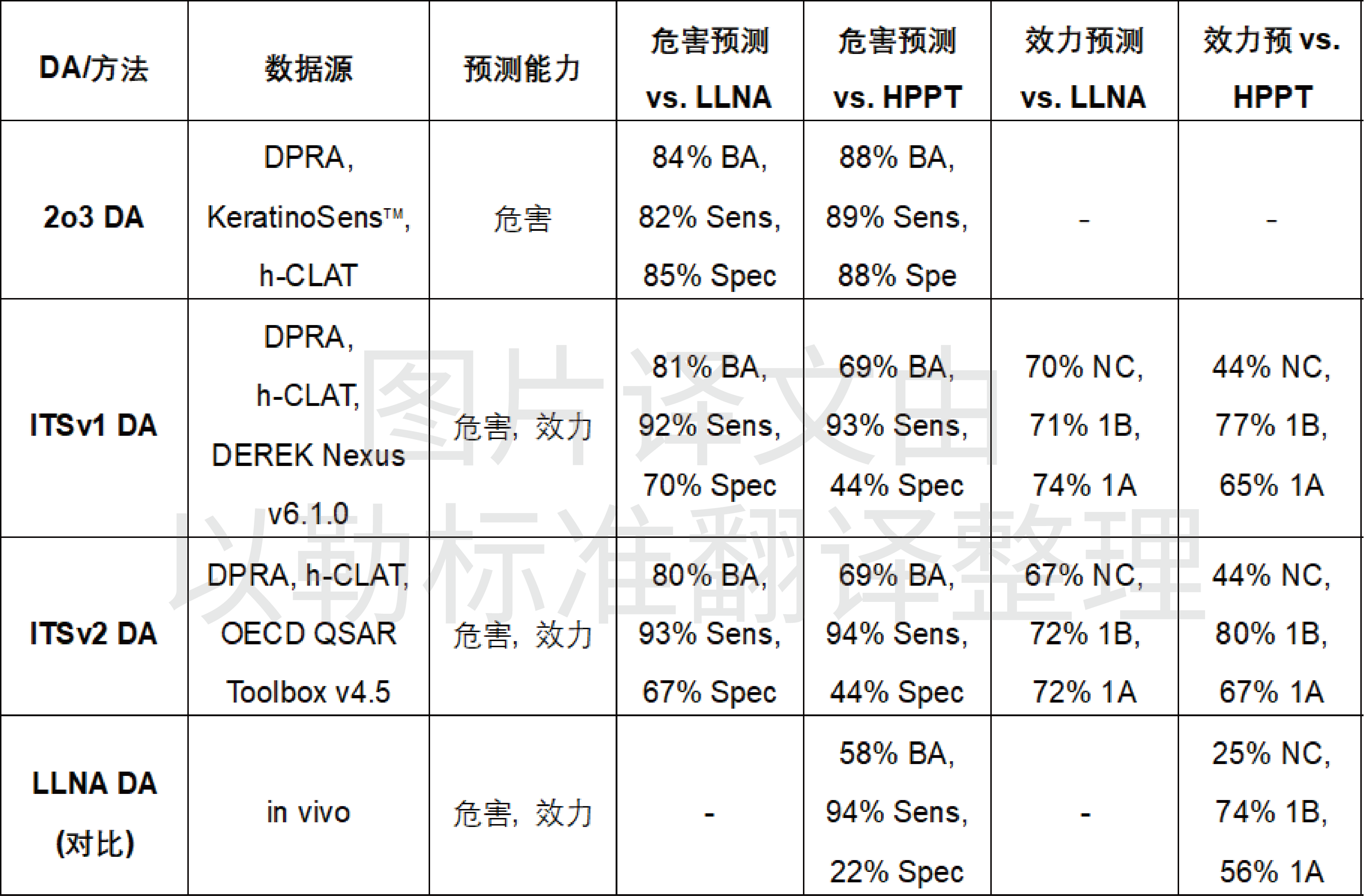 策略ITSv1和ITSv2分別用到了QSAR預測工具Derek Nexus和OECD QSAR Toolbox,只有在DPRA和h-CLAT中至少一種方法可用的情況下才有使用QSAR預測的必要,否則這兩種DAs均不可使用。指南中也對兩種QSAR預測工具的使用方法和應用范圍進行了說明。