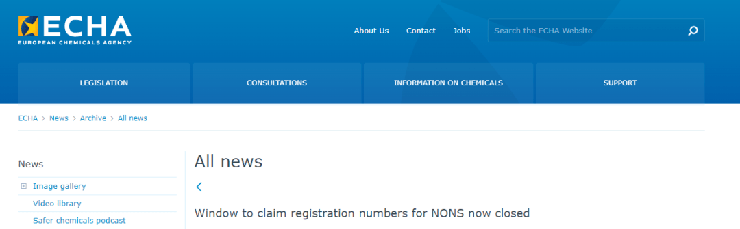 在2008年歐洲化學品管理局(ECHA)就已經為根據危險物質指令通報的所有物質分配了注冊號,以供REACH法規下的注冊人使用,并要求企業必須在今年7月17日之前申領分配給其的新物質通報(NONS)注冊號。