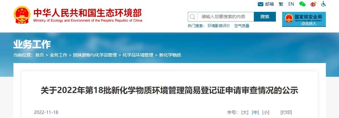 ▌擬批準的新化學(xué)物質(zhì)環(huán)境管理簡易登記證明細表