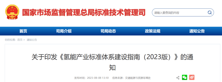 國家市場監(jiān)管總局8月8日消息,近日,國家標準委、國家發(fā)改委、工信部、生態(tài)環(huán)境部、應(yīng)急管理部、國家能源局六部門聯(lián)合印發(fā)《氫能產(chǎn)業(yè)標準體系建設(shè)指南(2023版)》(以下簡稱《指南》)。這是國家層面首個氫能全產(chǎn)業(yè)鏈標準體系建設(shè)指南。