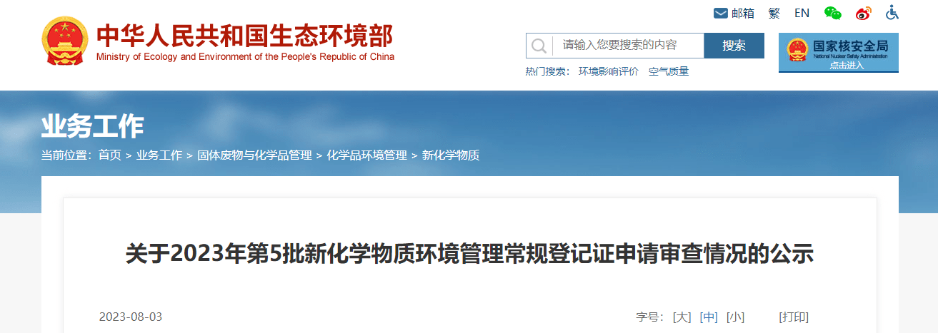 中國新化學物質登記