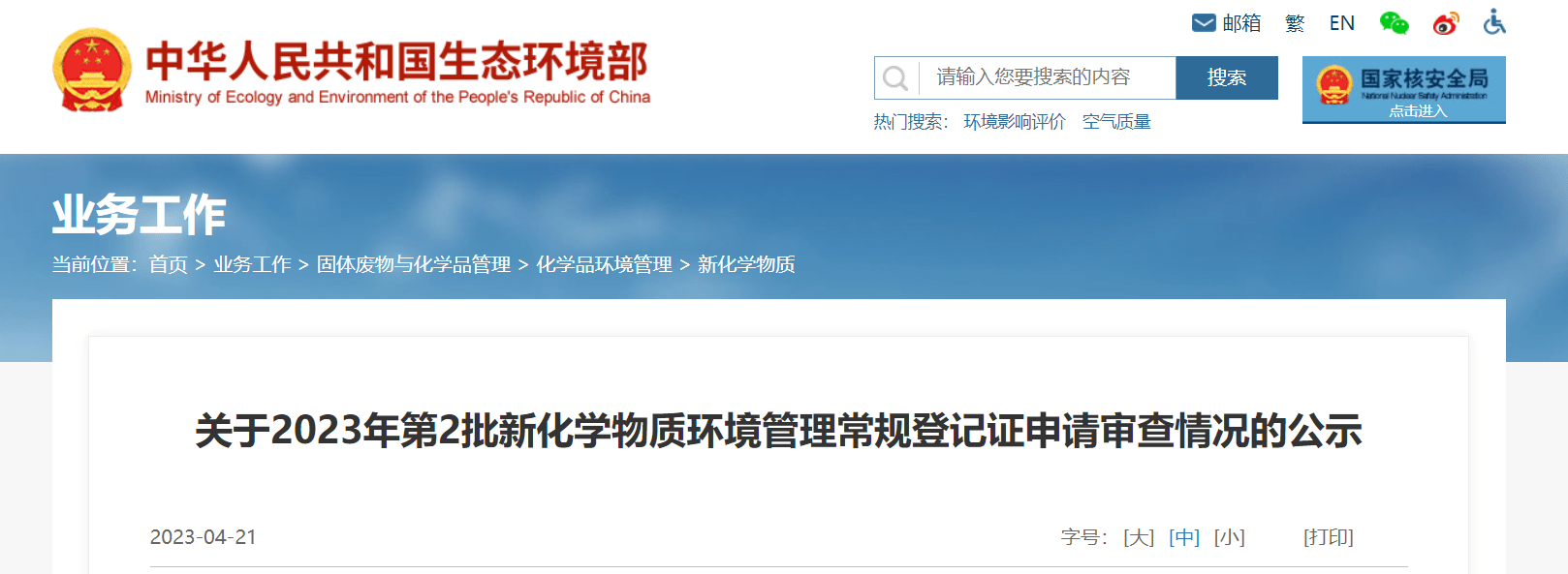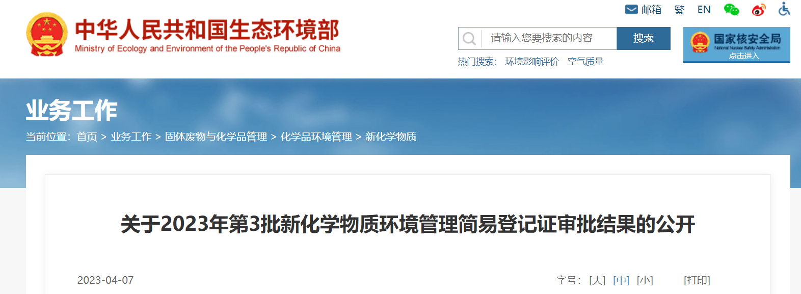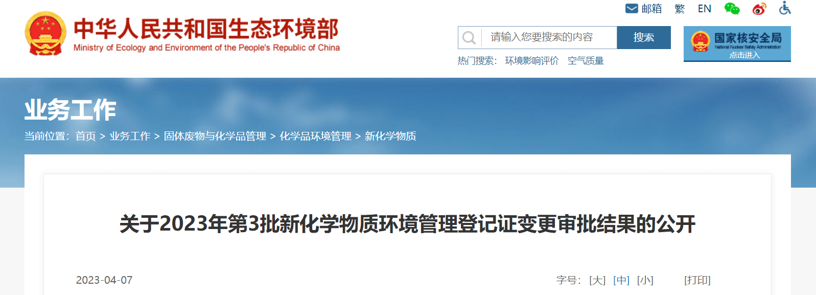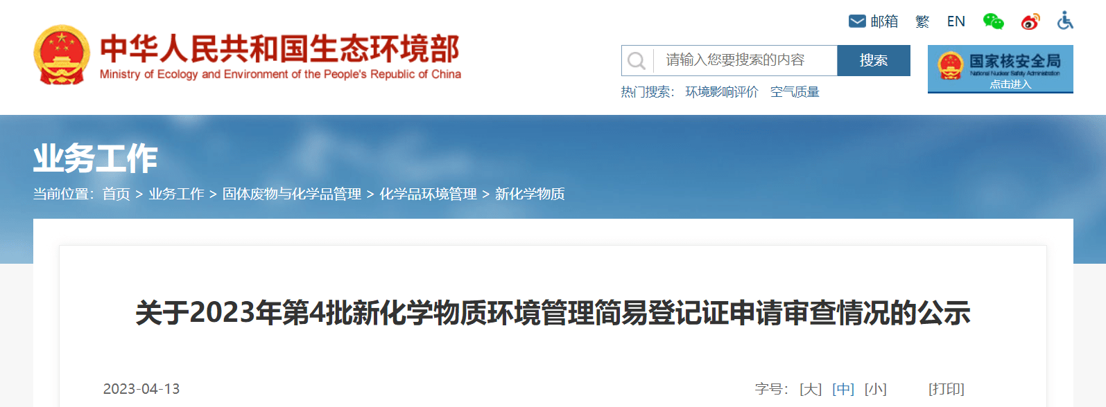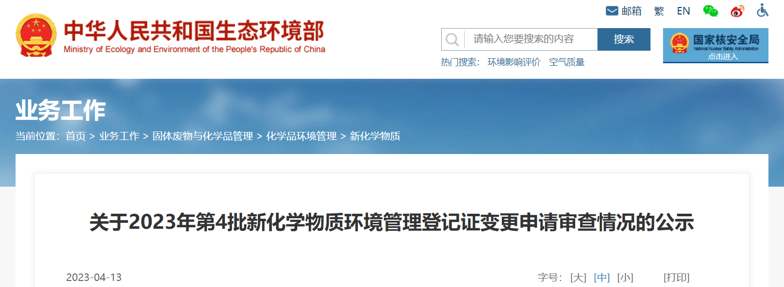 中國新化學物質登記