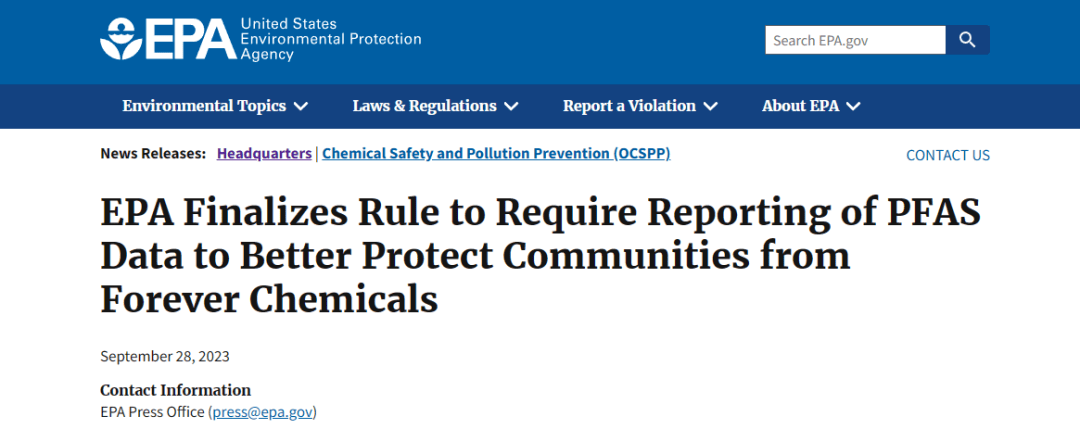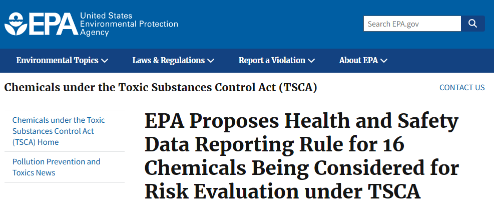 美國TSCA:針對16種化學物質制定健康和安全數據報告規則